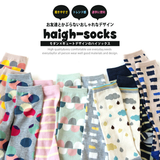 【1足あたり約248円】靴下 キッズ 女の子 北欧風 モダン柄 ハイソックス 8足セット 15-19cm 20-24cm ネーム 名前欄 ボーダー 水玉 幾何学 おしゃれ かわいい プチプラ 防寒 運動会 通園 通学 保育園 幼稚園 小学校 学校 韓国風 ファッション まとめ買い ギフト