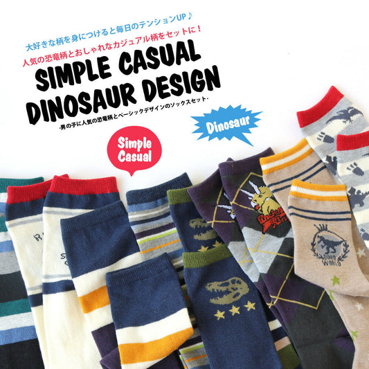 【1足あたり約236円】靴下 キッズ 男の子 名前 ネーム欄付 ハイソックス 8足セット カジュアル 恐竜 ミックスデザイン 15-19cm 20-24cm対応サイズ ダイナソー ティラノサウルス おしゃれ 通園 通学 小学生 保育園 幼稚園 運動会 スポーツ 防寒 通年 プチプラ