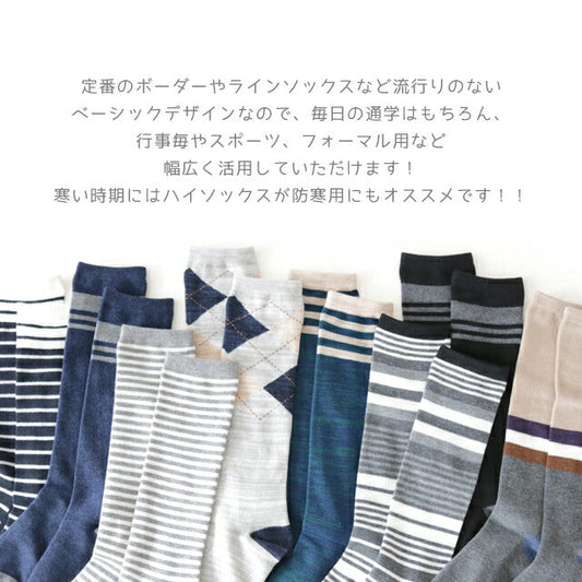 靴下 キッズ 男の子 ハイソックス 8足セット カジュアルおしゃれ ヒキソロエ ミックスカラー ネーム 名前欄付 15-19cm 20-24cm 送料無料 あす楽対応商品