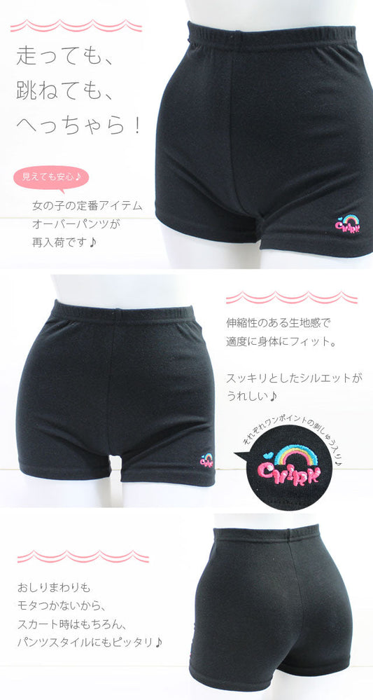 【5枚セット】 キッズ 女の子 子供 オーバーパンツ 1分丈 レギンス スパッツ / アンダーパンツ インナーパンツ ブラック 黒 カワイイ刺繍入り 卒業式 入学式 通園 通学 送料無料