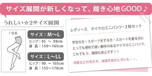 【2枚セット】 レディース マイクロミニパンツ 1分丈 レギンス スパッツ / アンダーパンツ インナーパンツ ブラック 黒