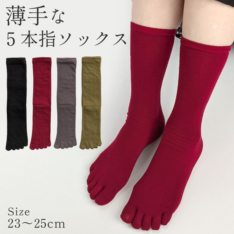 靴下 レディース ソックス 5本指 薄手 クルー丈 通気性 おしゃれ ダークカラー 綿混 肌に優しい シンプル プレゼント ギフト 大人 通年