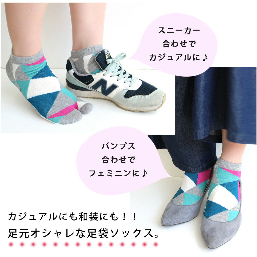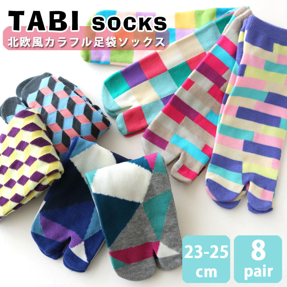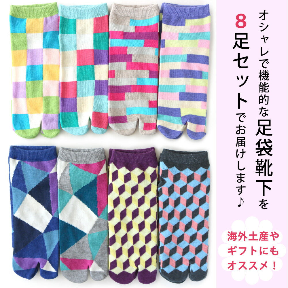 靴下 レディース 北欧風カラフル足袋ソックス ショート丈 オシャレで機能的 外反母趾予防 冷えやむくみ対策に 8足セット 綿混 海外土産 ギフト 送料無料