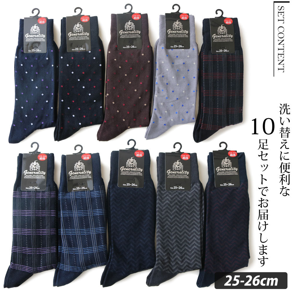 メンズ 靴下 10足組 ビジネスソックス カジュアル ドレス柄 セットフォーマル 紳士 通年 通勤 通学 男性 あす楽対応商品